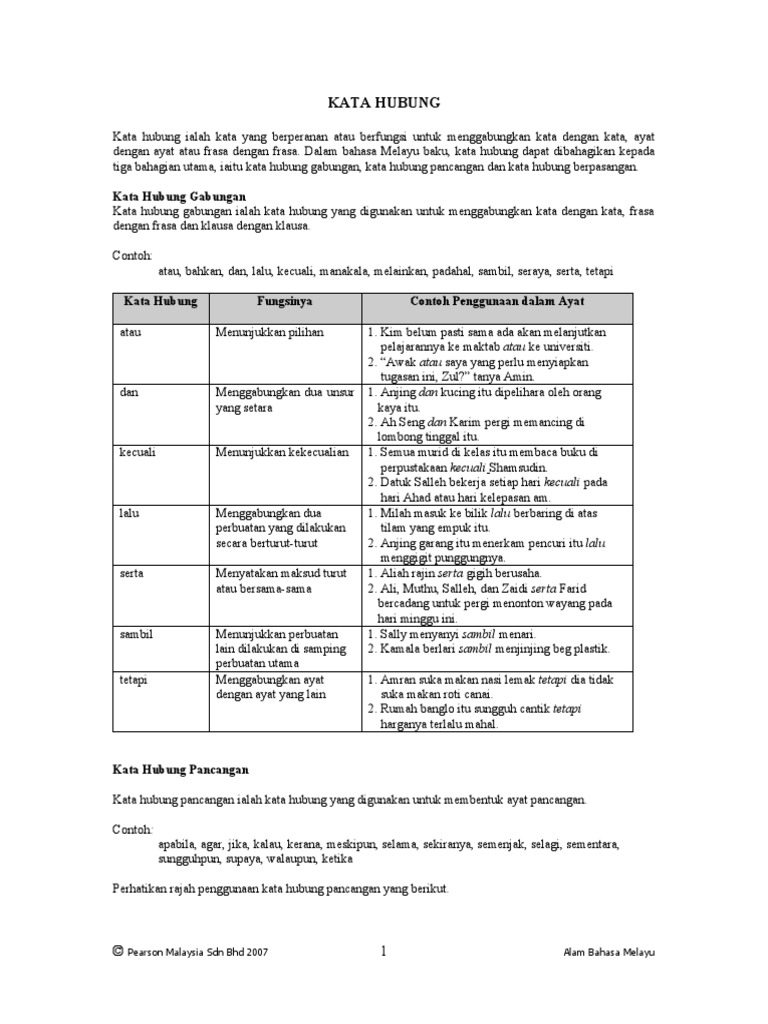 Contoh Penghubung Ayat Bahasa Melayu